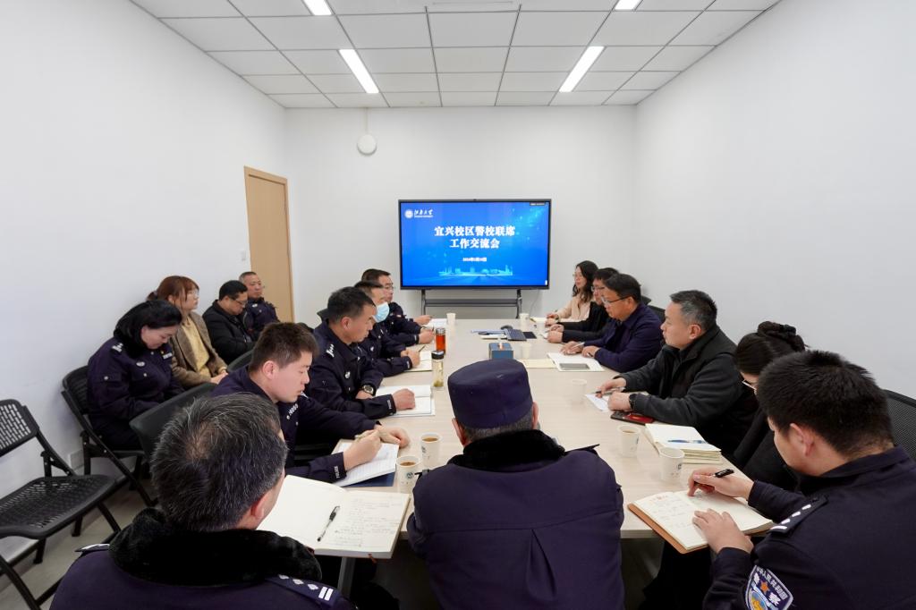 为深化警校协同联动,凝聚校园安全防护合力,3月10日下午,宜兴校区召开“警校联席工作交流会”。宜兴市公安局副局长钱希杰带队出席会议,市公安局内保大队副大队长赵亚伟,政保中队长邵海峰,刑警大队副中队长梁曦,出入境大队副中队长王夏芬,以及禁毒大队,治安警察大队,新庄派出所及驻校警务室相关工作人员一同参会。学校保卫处(部)副处长季王飞,实验室与资产管理处副处长赵爱军,党委学生工作部相关工作人员参加了会议。会议由宜兴校区管理办公室主任潘庆伟主持。